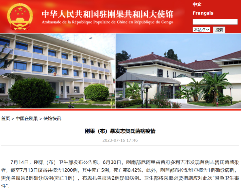 7月14日,剛果(布)衛(wèi)生部發(fā)布公告稱,6月30日,剛南部尼阿里省首府多利吉市發(fā)現(xiàn)首例志賀氏菌感染者,截至7月13日該省共報(bào)告1200例,其中死亡5例,死亡率0.42%。此外,剛首都布拉柴維爾報(bào)告1例確診病例,黑角省報(bào)告6例確診病例(死亡1例),布恩扎省報(bào)告2例疑似病例。衛(wèi)生部將采取必要措施應(yīng)對(duì)此次“緊急衛(wèi)生事件”。