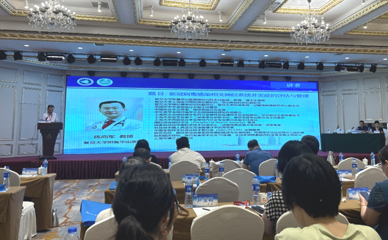 由范仲鵬教授主持、陳向軍教授分享的題為“新冠病毒感染相關神經(jīng)系統(tǒng)并發(fā)癥的評估與管理”的報告中,陳向軍教授以新冠病毒感染的炎性因子風暴為切入點,通過研究在新冠肺炎患者的血漿中發(fā)現(xiàn),約6%的單核細胞處于焦亡狀態(tài),相對健康人的血漿,新冠患者血漿中所有焦亡相關的生物標志物水平都顯著更高,而且在患者中,重癥患者尤為突出。由此,陳教授講述了《新型冠狀病毒感染相關神經(jīng)系統(tǒng)并發(fā)癥的評估與管理中國專家共識(2023)》這一專家共識在新冠病毒感染神經(jīng)系統(tǒng)患者的臨床診療中的重要作用:此共識基于現(xiàn)有的最佳證據(jù),為接診新冠病毒感染神經(jīng)系統(tǒng)患者相關科室醫(yī)生提供了關于評估和治療的參考;部分推薦意見基于現(xiàn)有參考證據(jù)和專家經(jīng)驗,固有無證據(jù)或低質(zhì)量證據(jù)產(chǎn)生強推薦的情況;當高質(zhì)量證據(jù)出現(xiàn)后,相關推薦意見可能會改變。報告中,陳教授結(jié)合自己醫(yī)院的相關病例和相關研究數(shù)據(jù),整場報告有高度有深度,也把學術報告氛圍推向高潮。