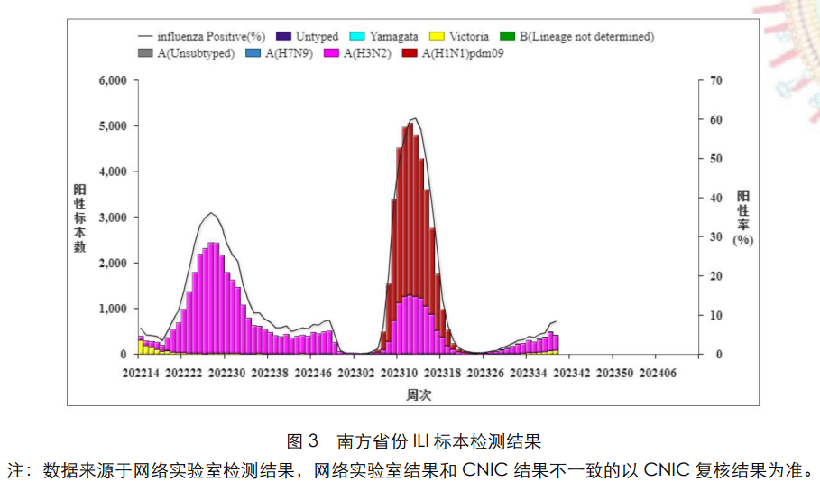 本輪南方流感流行毒株為H3N2,該病毒是甲型流感病毒的一個亞型,是一種由粘病毒引起的呼吸系統(tǒng)疾病,可以通過呼吸道傳播,患者多表現(xiàn)出普通流行性感冒的癥狀,腹瀉和嘔吐,重者會繼發(fā)肺炎和呼吸衰竭,甚至死亡。