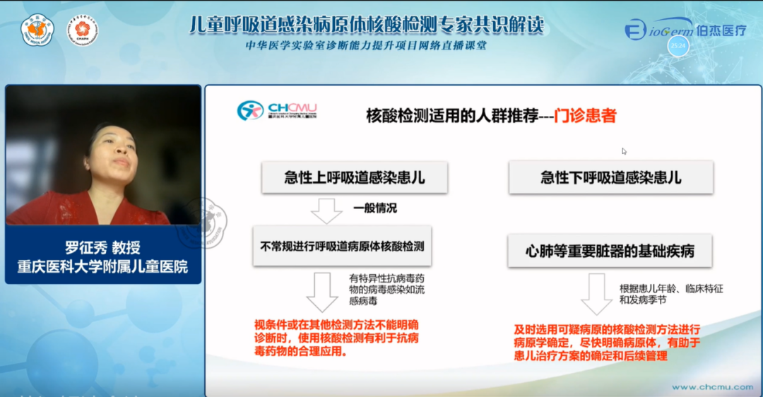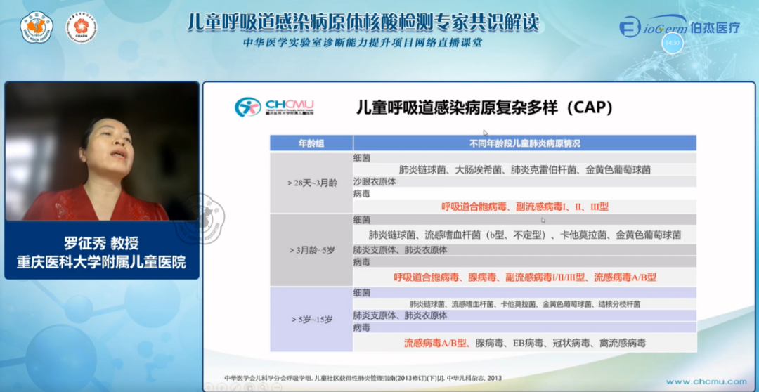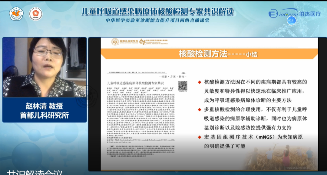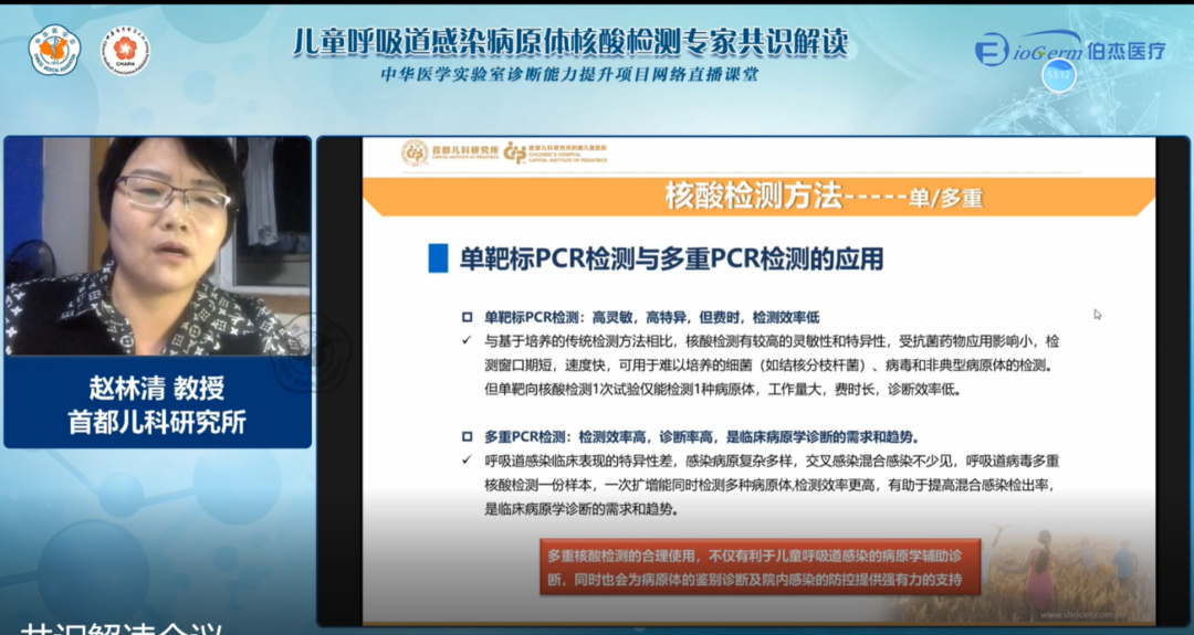 急性呼吸道感染是兒童最常見的感染性疾病,快速準(zhǔn)確的病原學(xué)診斷對于該類疾病的臨床診療及防控具有重要意義。為了進(jìn)一步解讀與推廣《兒童呼吸道感染病原體核酸檢測專家共識》,由中華醫(yī)學(xué)會雜志社主辦伯杰醫(yī)療支持的中華醫(yī)學(xué)實驗室診斷能力提升項目直播課堂——兒童呼吸道感染病原體核酸檢測專家共識解讀于2022年4月28日順利召開,眾多專家以線上的形式進(jìn)行了特邀報告和學(xué)術(shù)討論。