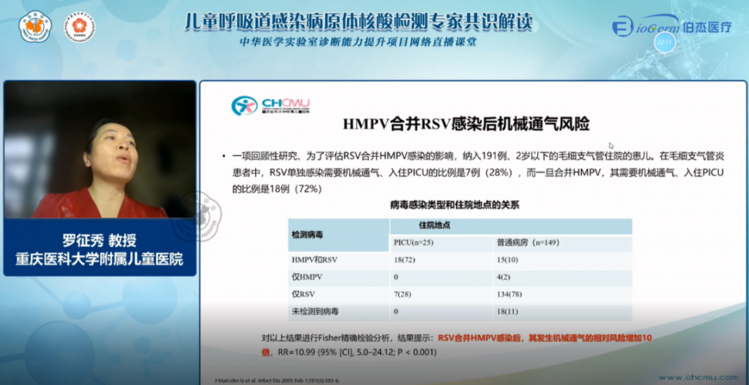 國內(nèi)研究表明:HMPV和RSV協(xié)同感染率高達(dá)41.9%,該類患兒更容易發(fā)生毛細(xì)支氣管炎,機(jī)械通氣的風(fēng)險更高。