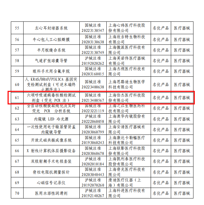 近日,上海市經(jīng)濟和信息化委員會、上海市衛(wèi)生健康委員會、上海市醫(yī)療保障局聯(lián)合發(fā)布《2022年度上海市生物醫(yī)藥“新優(yōu)藥械”產(chǎn)品目錄》,伯杰醫(yī)療六項呼吸道病毒核酸檢測試劑盒(熒光PCR法)產(chǎn)品成功入選,伯杰醫(yī)療創(chuàng)新實力得到認可。