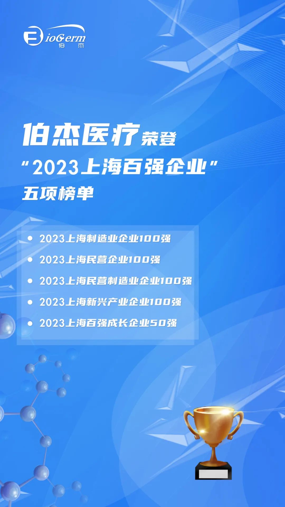 伯杰醫(yī)療憑借卓越的戰(zhàn)略布局、優(yōu)秀的經(jīng)營管理、行業(yè)領先的綜合實力,入選“2023上海制造業(yè)企業(yè)100強”、“2023上海民營企業(yè)100強”、“2023上海民營制造業(yè)企業(yè)100強”、“2023上海新興產(chǎn)業(yè)企業(yè)100強”、“2023上海百強成長企業(yè)50強”五項榜單。