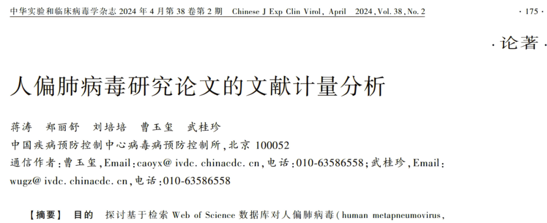 計量分析學(xué)是運用統(tǒng)計手段對論文進行定量或半定量分析,以揭示論文分布規(guī)律、預(yù)測學(xué)科發(fā)展。在最新的一篇文獻中,筆者通過檢索 Web of Science 數(shù)據(jù)庫,探討了HMPV的研究現(xiàn)況及發(fā)展趨勢。