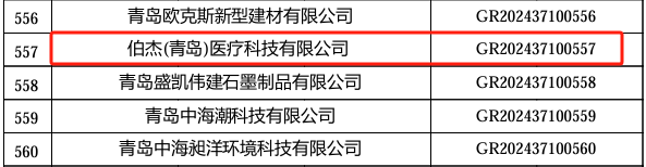 喜報(bào)!伯杰(青島)醫(yī)療科技有限公司榮膺國(guó)家高新技術(shù)企業(yè)
