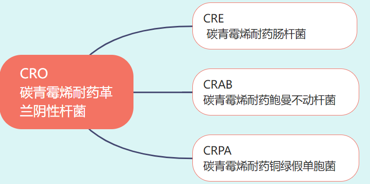 1.碳青霉烯耐藥腸桿菌目細(xì)菌(CRE):是指對一種或多種碳青霉烯類抗菌藥物耐藥的腸桿菌目細(xì)菌,主要包括肺炎克雷伯菌和大腸埃希菌等。