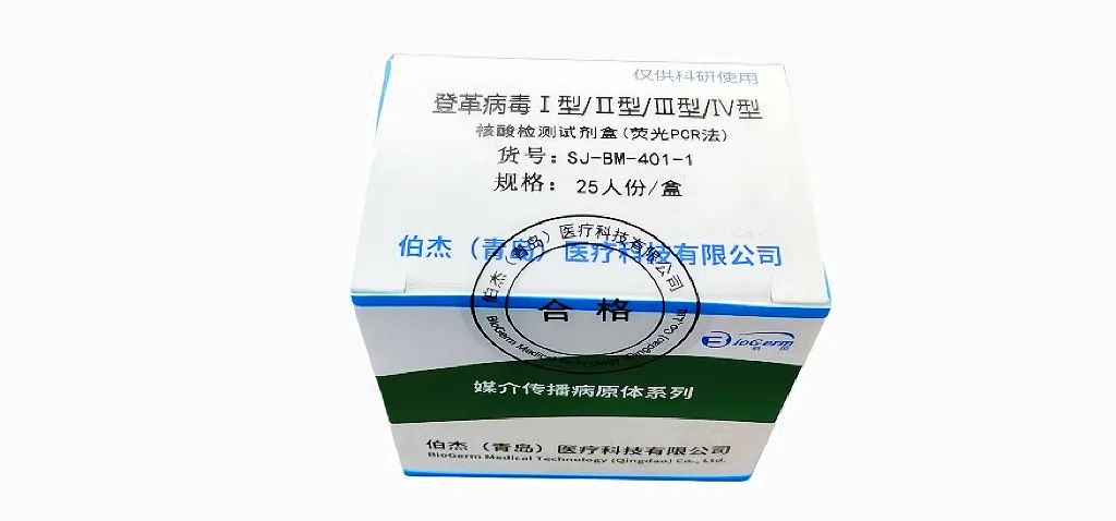 青島伯杰登革病毒Ⅰ型/Ⅱ型/Ⅲ型/Ⅳ型預(yù)混核酸檢測(cè)試劑盒(熒光PCR法):靈敏度高,特異性強(qiáng);操作簡(jiǎn)便,60min即可完成擴(kuò)增實(shí)驗(yàn),用于登革病毒實(shí)驗(yàn)室快速檢測(cè)和分型。除登革病毒試劑外,青島伯杰還可提供多種媒介性傳染病病原體檢測(cè)試劑盒,助力疾病預(yù)防控制中心對(duì)多種媒介性傳染病進(jìn)行常規(guī)監(jiān)測(cè)和實(shí)驗(yàn)室鑒別。