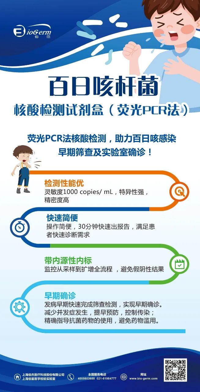 本次入選產(chǎn)品均為伯杰自主研發(fā)創(chuàng)新產(chǎn)品,百日咳桿菌核酸檢測試劑盒(熒光PCR法)可用于定性檢測人鼻咽拭子樣本中的百日咳桿菌核酸DNA,用于百日咳桿菌感染的輔助診斷和管理,快速提供準確的檢測結果、指導呼吸道病原感染的精準治療,滿足臨床對呼吸道病原檢測的需求。