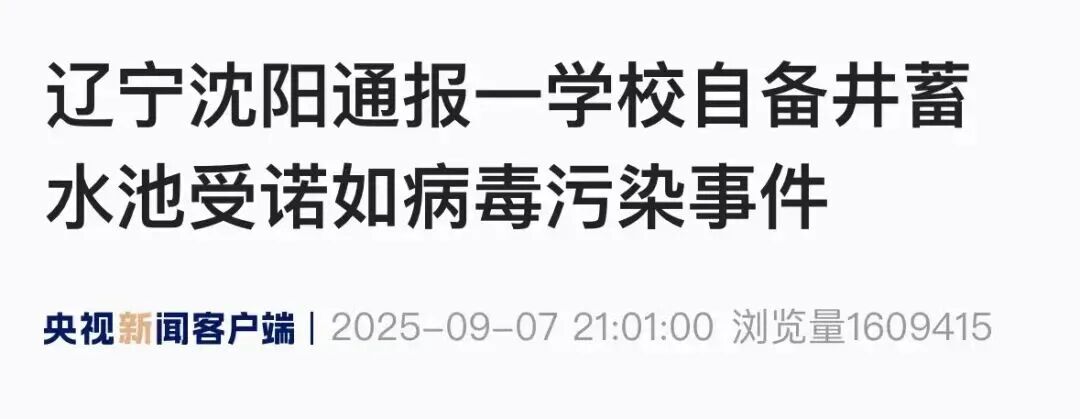 據央視新聞報道,9月7日,沈陽市疾病預防控制局發(fā)布通報,自8月31日沈陽師范大學校醫(yī)院接診首例嘔吐、腹瀉癥狀學生起,累計報告病例達2087人,經流行病學調查并結合供水系統(tǒng)現場勘察和實驗室檢測結果,綜合判定本起事件系由學校第三生活區(qū)自備井蓄水池受諾如病毒污染引發(fā)的突發(fā)公共衛(wèi)生事件。