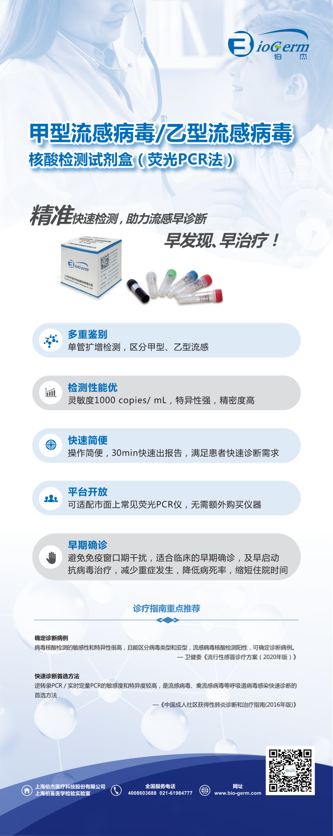 伯杰已推出甲型流感病毒/乙型流感病毒核酸檢測試劑盒(熒光PCR法),具有快速準(zhǔn)確的檢測能力,僅需30分鐘即可完成,極大地滿足了門急診及住院患者對(duì)于迅速診斷的需求,為早期發(fā)現(xiàn)、及時(shí)干預(yù)提供了強(qiáng)有力的支持。此外,伯杰另有甲型/乙型流感病毒抗原檢測試劑盒(膠體金法)。操作簡便快捷,1分鐘檢測,15分鐘出結(jié)果,成為發(fā)熱門診最得力的病原體篩查工具??蓭椭t(yī)療機(jī)構(gòu)更有效地分流病人,從而顯著提升整體診療效率與服務(wù)質(zhì)量。