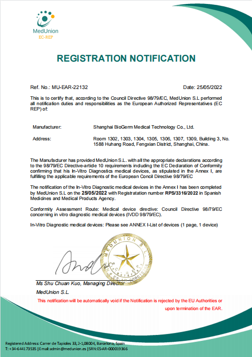 近日,伯杰醫(yī)療CE認(rèn)證大軍再增一員干將:伯杰醫(yī)療猴痘病毒核酸檢測(cè)試劑盒(PCR-熒光探針?lè)?成功獲得歐盟CE認(rèn)證,代表著伯杰醫(yī)療產(chǎn)品的品質(zhì)再次獲得了國(guó)際權(quán)威機(jī)構(gòu)的認(rèn)可與肯定。