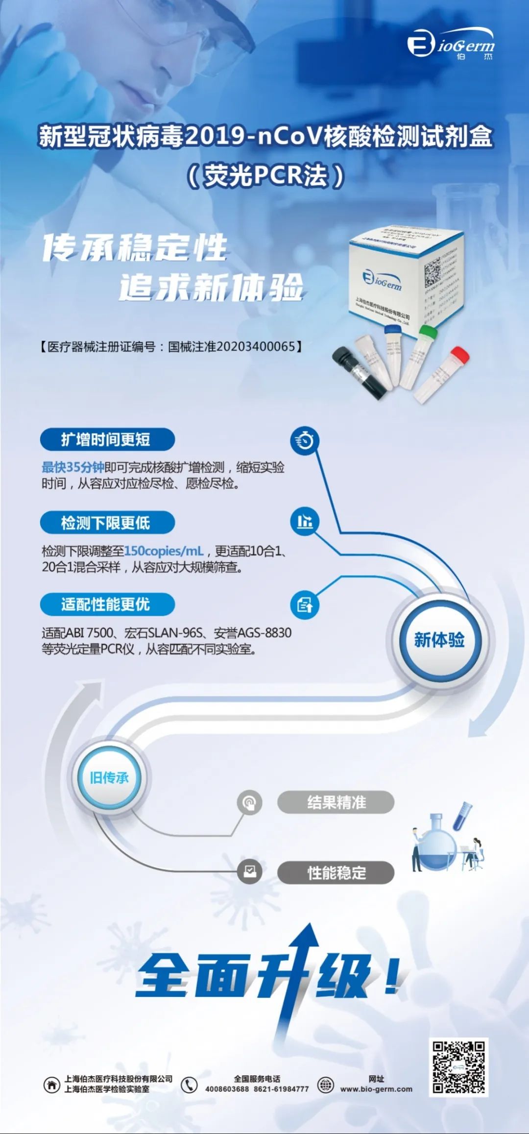 近日,伯杰醫(yī)療“新型冠狀病毒2019-nCoV核酸檢測試劑盒(熒光PCR法)”全面升級(jí),優(yōu)化變更已通過國家藥品監(jiān)督管理局(NMPA)審核,正式上市!