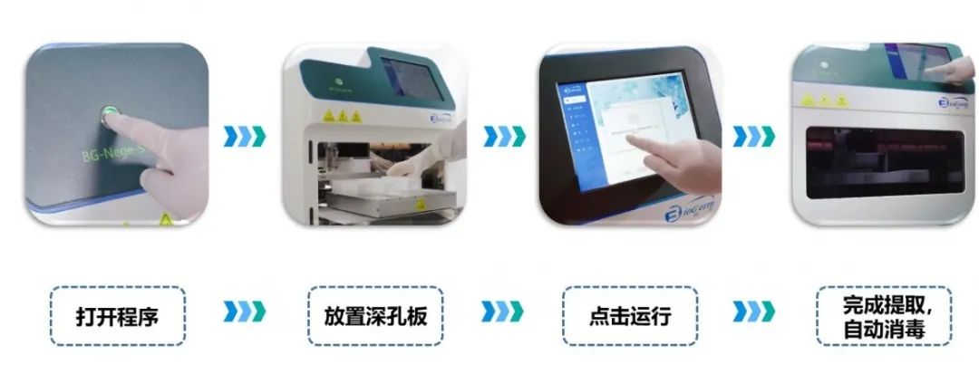 經(jīng)過多年的技術(shù)探索與沉淀,伯杰醫(yī)療隆重推出時效更快、操作更便捷、生物安全性更高的BG-Nege-96全自動核酸提取儀。BG-Nege-96提取儀采用先進的磁珠技術(shù)進行磁珠轉(zhuǎn)移、分離,搭配伯杰核酸提取試劑盒,96個樣本提取最快僅需9分鐘。