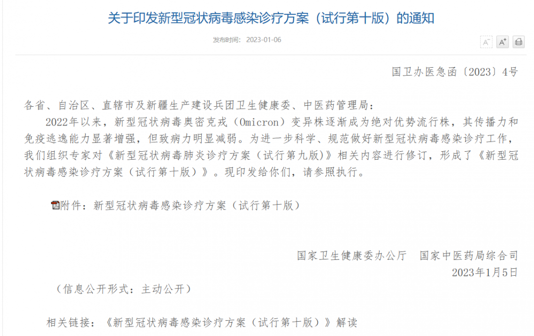 2023年1月8號(hào)起,我國對(duì)新冠病毒感染正式實(shí)施"乙類乙管"。工作重心從"防感染"轉(zhuǎn)到"保健康、防重癥",聚焦健康服務(wù)與管理。國家衛(wèi)生健康委會(huì),根據(jù)新冠病毒感染乙類乙管及疫情防控措施優(yōu)化調(diào)整相關(guān)要求,結(jié)合奧密克戎變異毒株特點(diǎn)和感染者疾病特征,形成了《新型冠狀病毒感染診療方案(試行第十版)》。