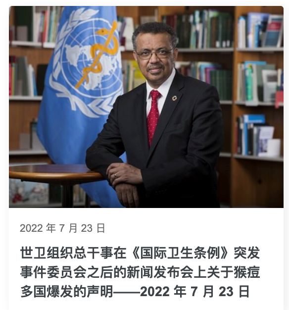 國際公共衛(wèi)生緊急事件是指“通過疾病的國際傳播構(gòu)成對其它國家公共衛(wèi)生風險,并有可能需要采取協(xié)調(diào)一致的國際應對措施的不同尋常的事件?!辫b于上一次被宣布構(gòu)成“國際關(guān)注的突發(fā)公共衛(wèi)生事件”是新型冠狀病毒感染肺炎疫情,猴痘疫情引起了全球的廣泛關(guān)注。