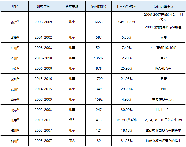 HMPV感染具有季節(jié)性,通常發(fā)生于冬末和整個春季,我國香港、廣州地區(qū)則以春夏為流行高峰。