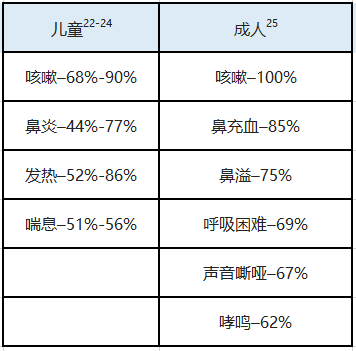 HMPV感染不僅存在于兒童,也可以影響成人,各種癥狀發(fā)生率見下表: