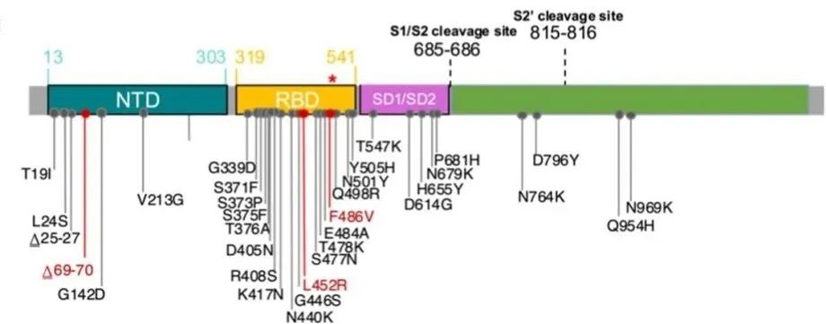 這些突變(主要指L452R、F486V)帶來的最主要變化是,BA.4和BA.5越來越能夠逃避人體已有的免疫系統(tǒng),使得接種過疫苗或已經(jīng)感染過新冠病毒的人們再次感染[2]。